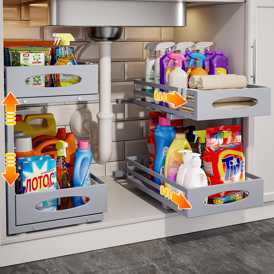 mixeshop Under Sink Organizers and Storage, Pull Out Kitchen Cabinet Organizer, 2 Tier Slide Out Steel Under Sink Storage Shelf for Kitchen Pantry Bathroom